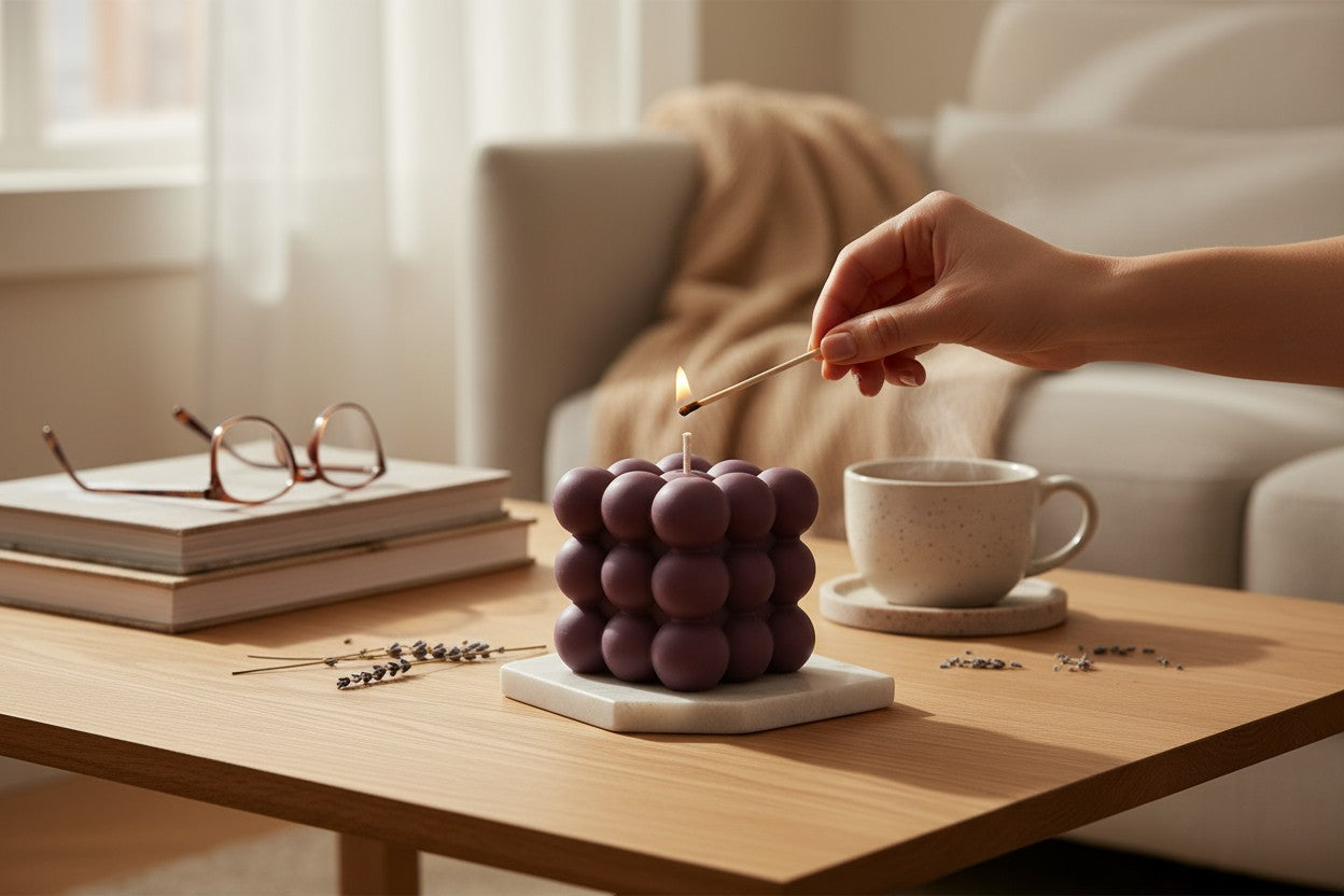 Eine moderne und stilvolle Kerze, die mit ihrer verspielten Bubble-Würfelform sofort ins Auge fällt.