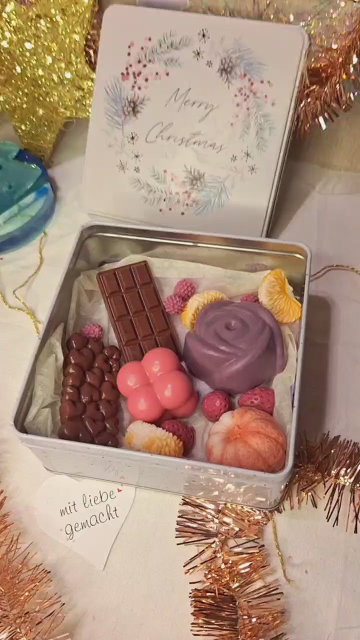 Deko-Seifenset „Sweet Moments“ – Handgemacht, Schoko-Beeren-Duft, Weihnachtsdose