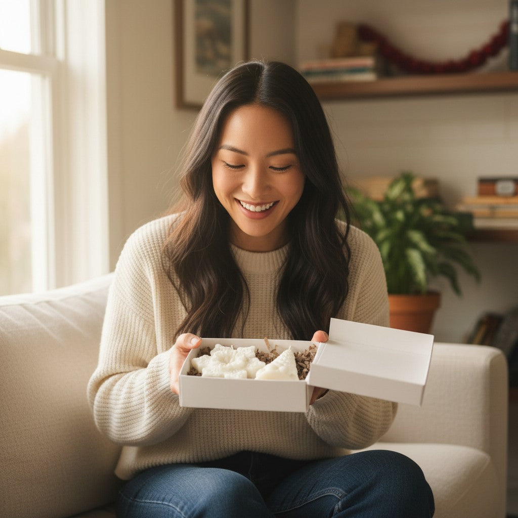 Jede Kerze wird liebevoll und sicher verpackt – bereit, um verschenkt oder direkt genossen zu werden.