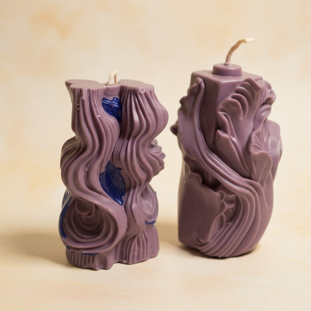Das „Zauberduo“ besteht aus zwei außergewöhnlichen Fantasie-Kerzen: einer kunstvollen Kerze mit Schmetterlingsform oben sowie einer strukturierten, mystischen Kerze mit organischen Wellen und fantasievollen Reliefdetails. Beide Stücke sind handgegossen aus naturreinem Sojawachs und bringen eine magische, warme Atmosphäre in dein Zuhause.
