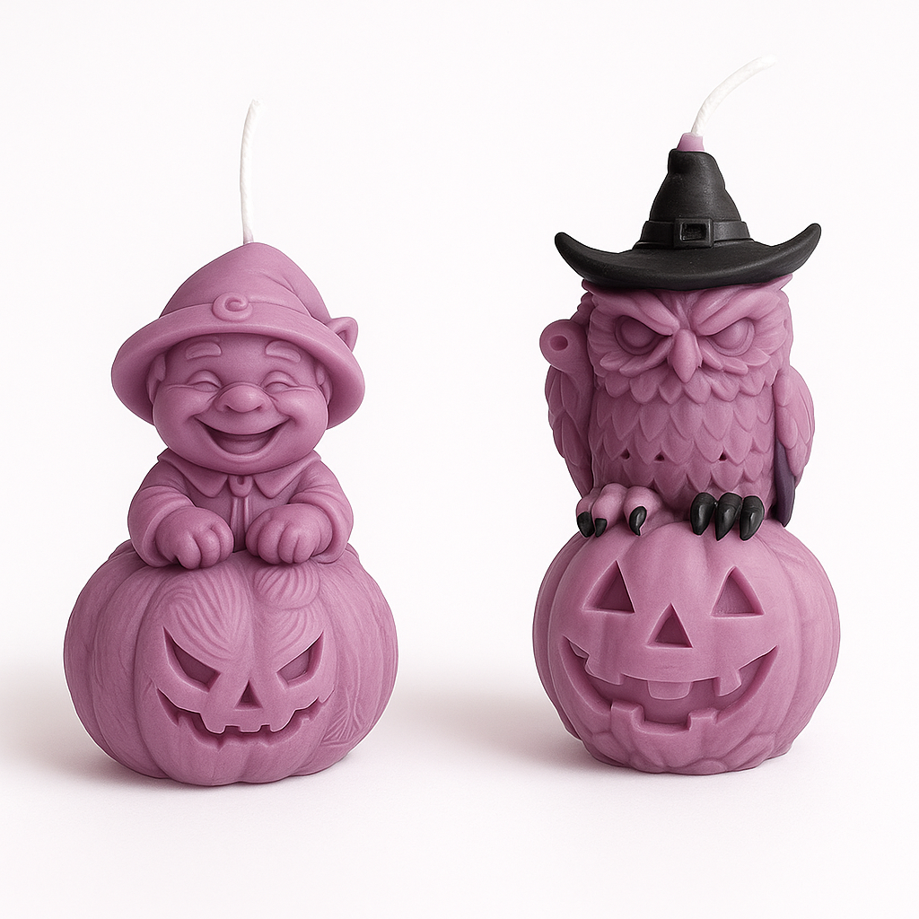 Sojakerzen-Set: Gnom & Eule auf Kürbis