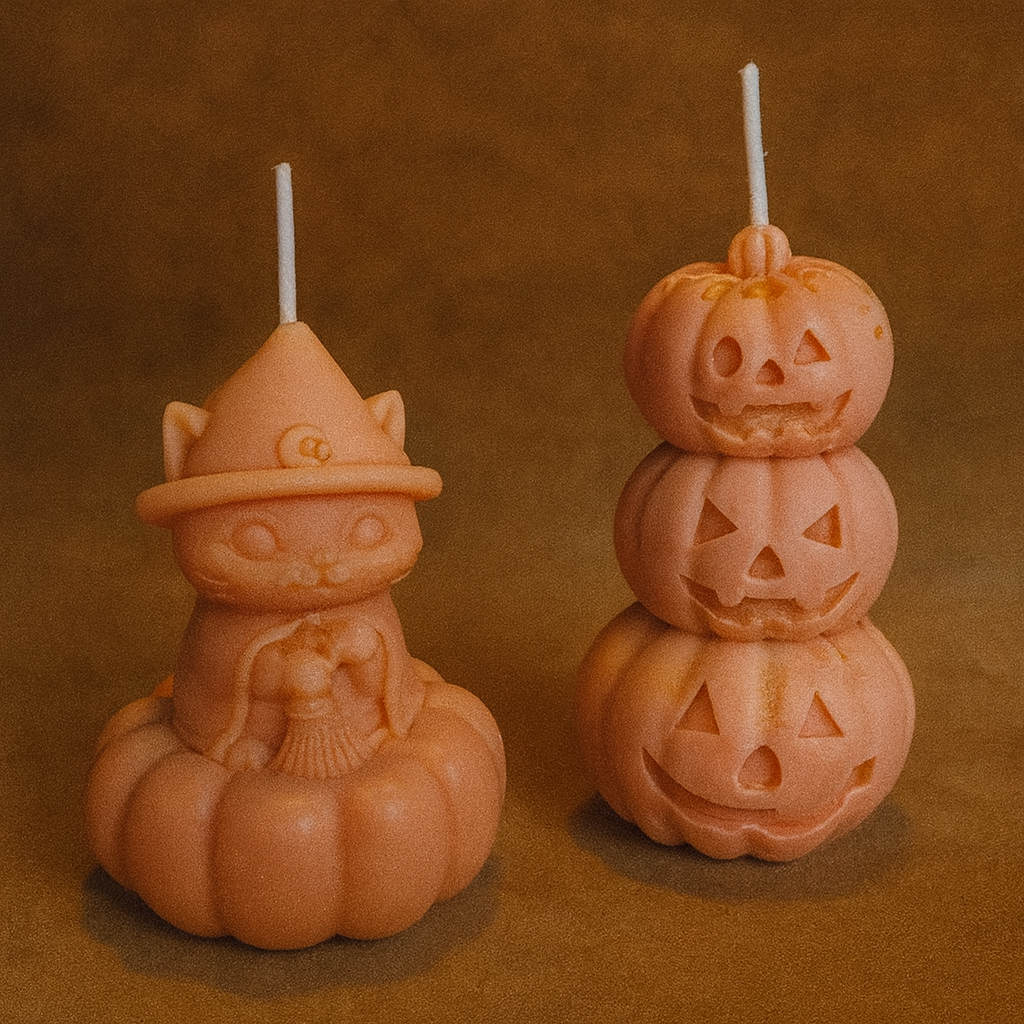 Sojakerzen-Set: Kater auf Kürbis & Kürbis-Turm