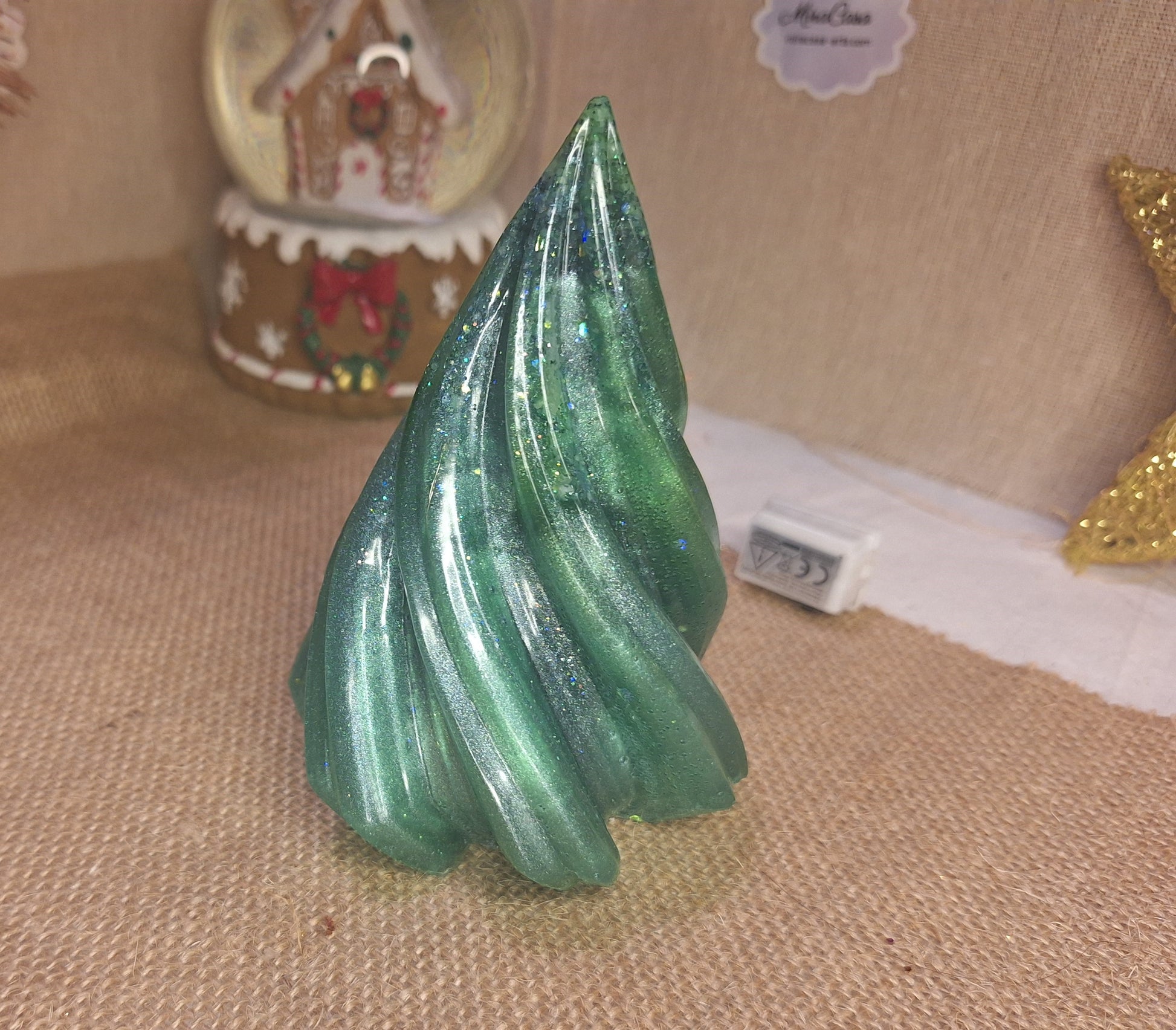 Эта декоративная ель, отлитая вручную из эпоксидной смолы, переливается красивым зеленым градиентом и мгновенно создает уютную рождественскую атмосферу в вашем доме. Ее изогнутая форма и перламутровый блеск делают ее настоящим украшением.
