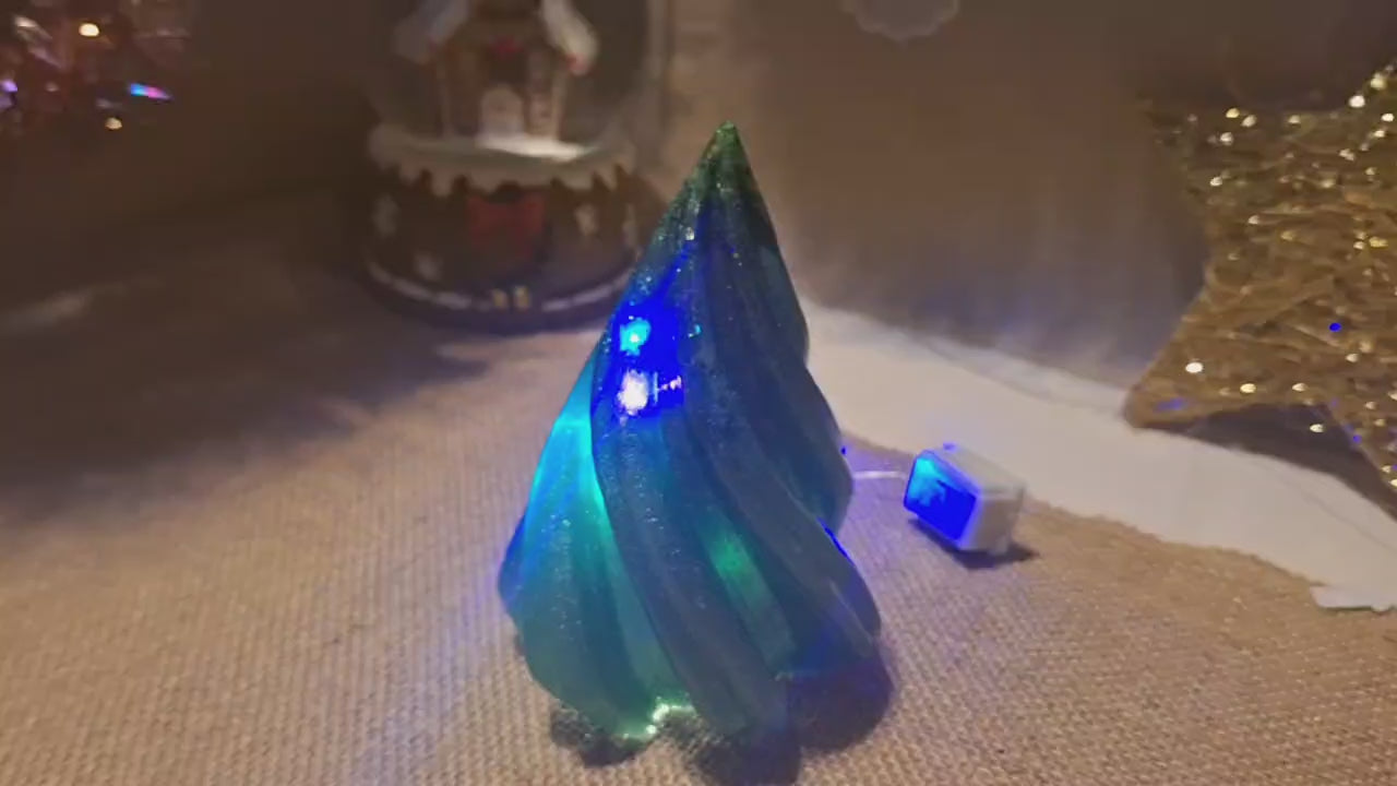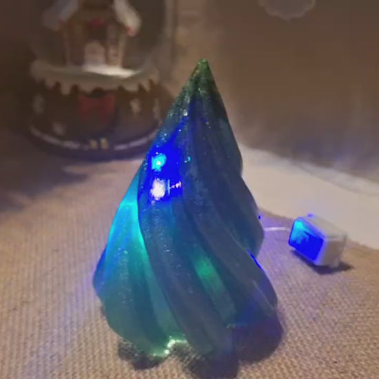 Светящаяся декоративная ель из эпоксидной смолы – 12 см, с гирляндой.