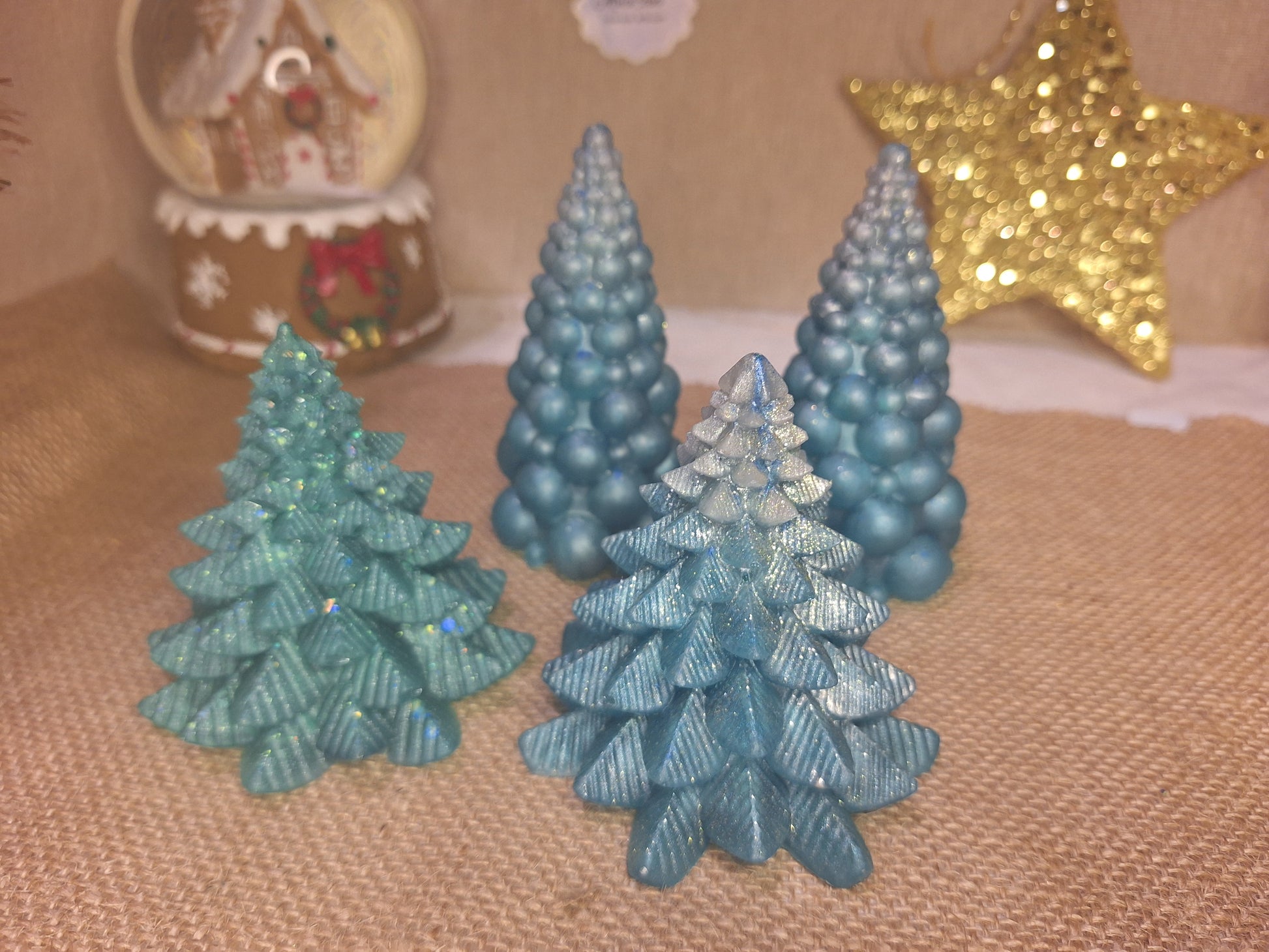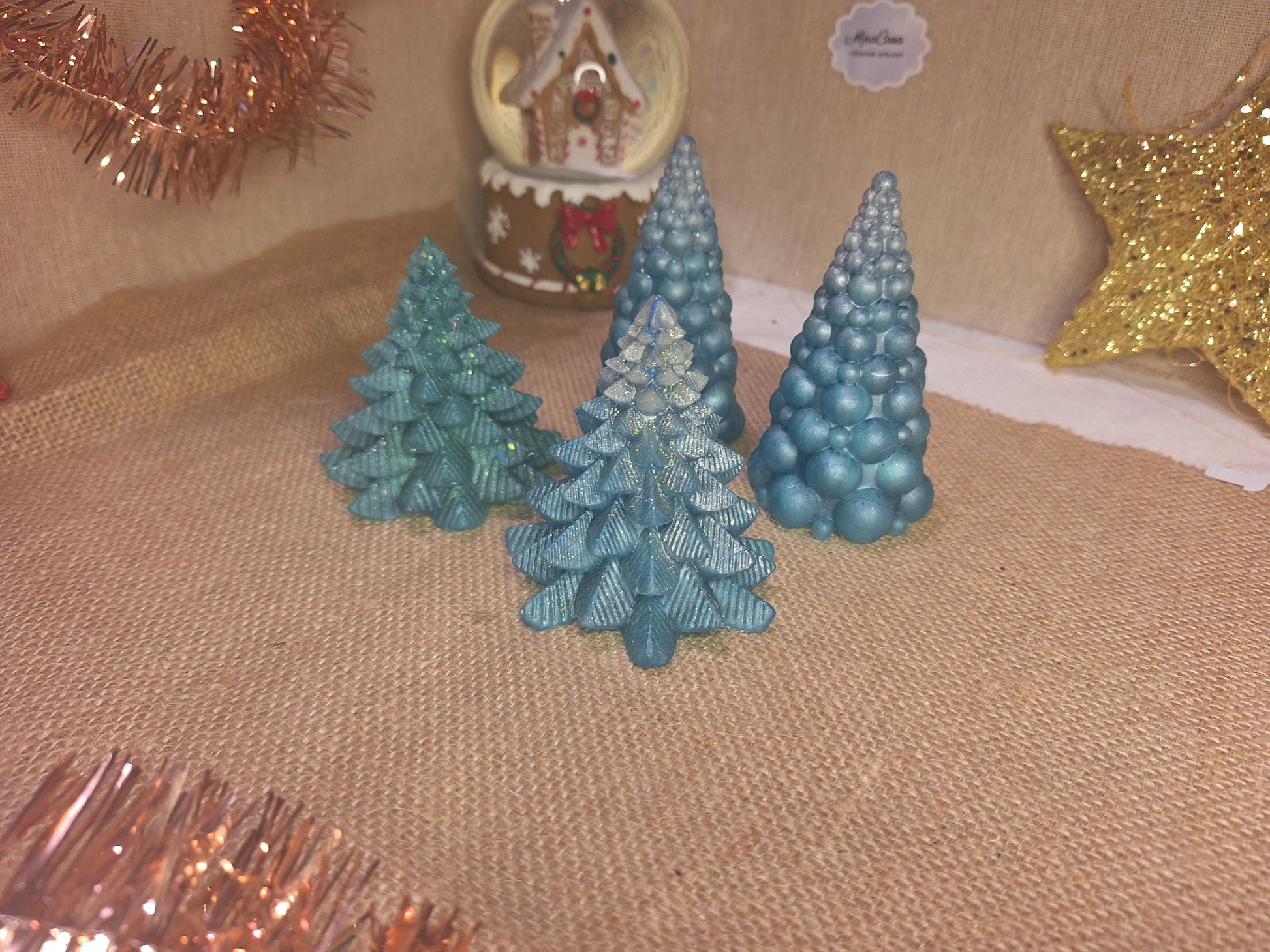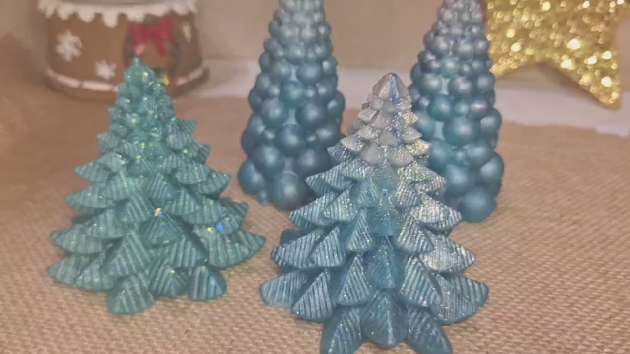 Миниатюрные ели из смолы – жемчужно-зеленые/голубые, две модели, 8–10 см.