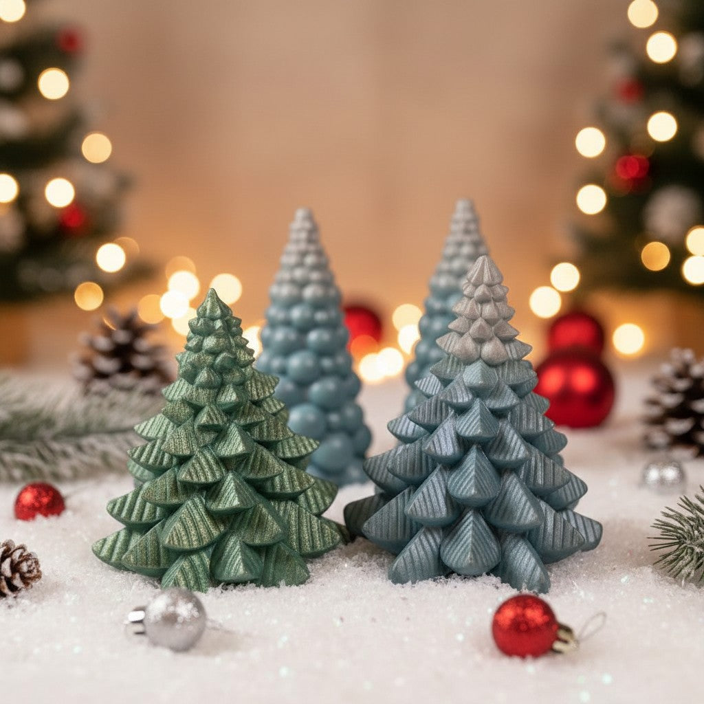 Эти миниатюрные ели, отлитые вручную из эпоксидной смолы, привнесут нежное зимнее сияние в любой дом. Перламутровая поверхность переливается оттенками зеленого и синего в зависимости от освещения, превращая каждую фигурку в маленькое произведение искусства.